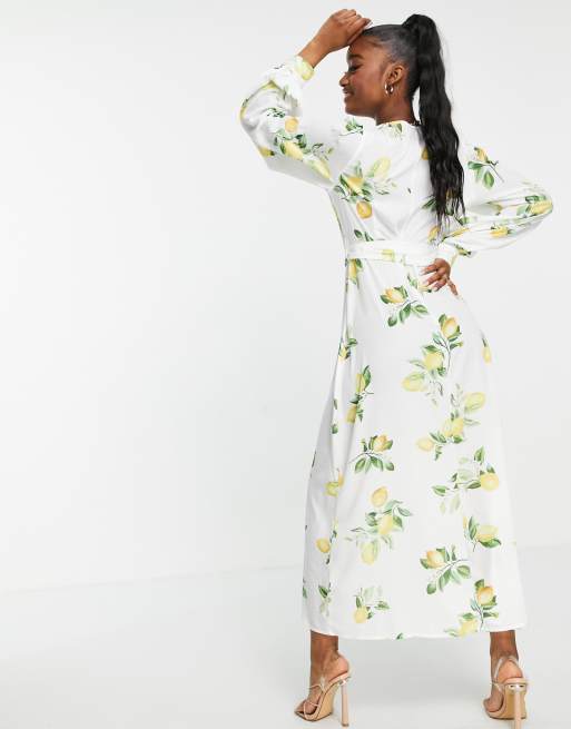 In The Style X Stacey Solomon Tie Detail Midi Dress In Summer Lemon Print Asos